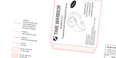 The Time Warrior Project describes a fictional time machine. It includes packaging, a manual, a simulator, publicity materials (a T-shirt and posters) -- everything except the actual time machine hardware.